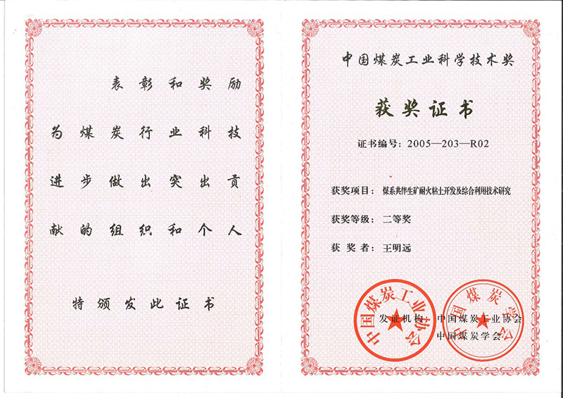 2005年中國煤炭工業(yè)科學技術二等獎