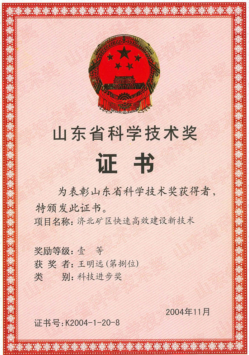 山東省科學(xué)技術(shù)獎(jiǎng)一等獎(jiǎng)