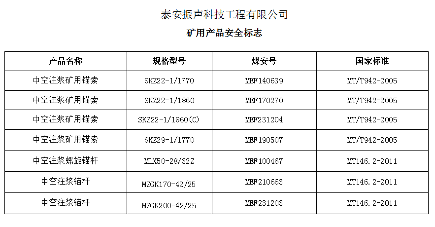泰安振聲科技工程有限公司主營(yíng)注漿錨索,中空注漿錨索,注漿錨桿,注漿添加劑等支護(hù)產(chǎn)品。