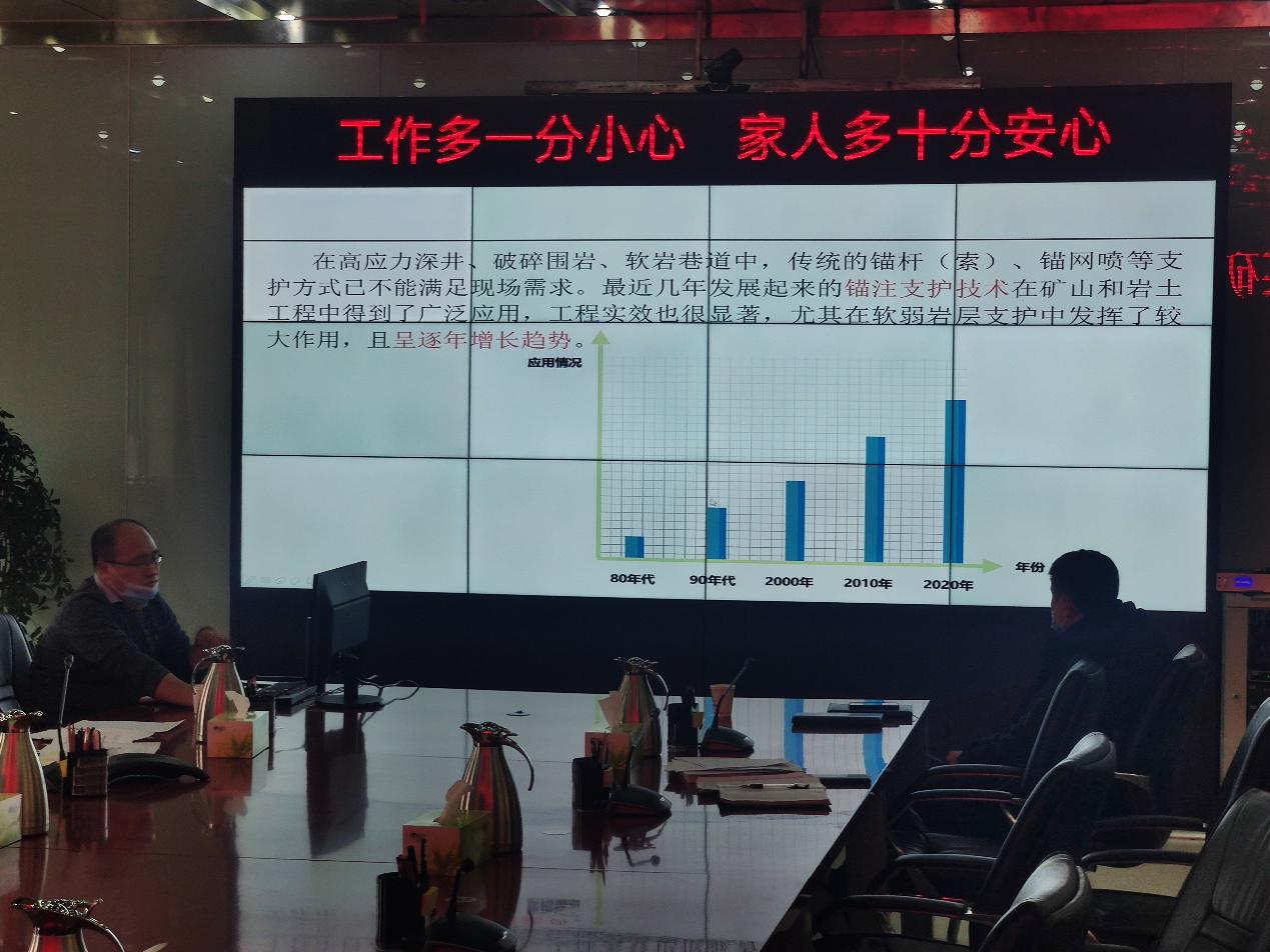 2021年1月11日,泰安振聲科技工程有限公司受邀到神東布爾臺煤礦進(jìn)行錨注加固相關(guān)培訓(xùn)和匯報(bào),布爾臺煤礦總工程師及生產(chǎn)辦相關(guān)工程技術(shù)人員參加了培訓(xùn),公司副總經(jīng)理牛金華進(jìn)行了題為《錨注加固強(qiáng)護(hù)表支護(hù)技術(shù)》的授課,對錨注加固控制圍巖支護(hù)機(jī)理、中空注漿錨索和注漿加固料原理及性能、錨注加固監(jiān)測評價(jià)效果檢驗(yàn)等進(jìn)行了講解。并與礦方工程技術(shù)人員一同對錨注加固技術(shù)進(jìn)行了研討,對礦方工程技術(shù)人員提出的相關(guān)問題進(jìn)行了認(rèn)真答疑,礦方領(lǐng)導(dǎo)對42108工作面錨注加固試驗(yàn)段支護(hù)效果給予了充分肯定。