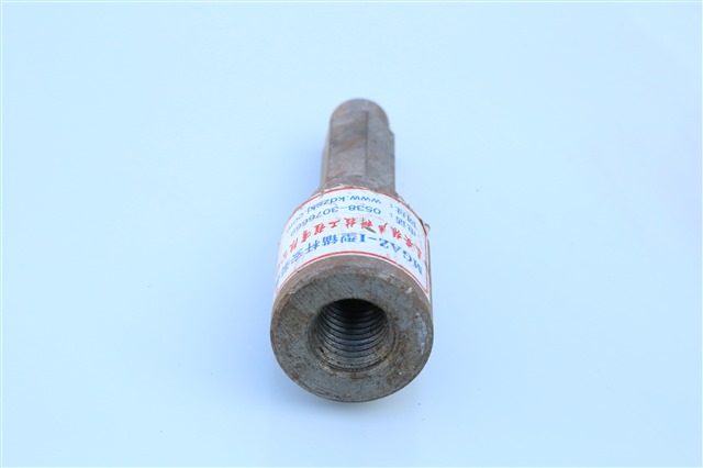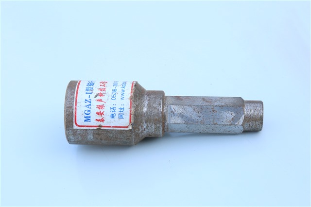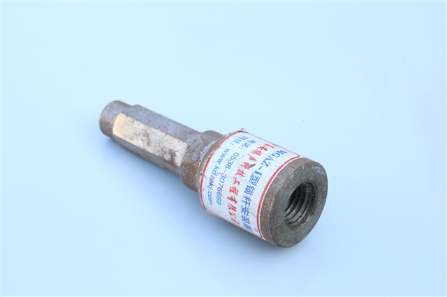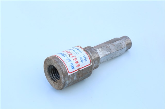 錨桿安裝器,屬于礦井的井巷支護作業(yè)用裝置領域。其特征在于該錨桿安裝器包括連接動力鉆的直桿型旋轉部和連接錨桿的直桿型頂進部,所述的直桿型旋轉部的前端為與動力鉆配合的尾部,后端沿軸心開設有圓柱形盲孔;所述的直桿型頂進部的前端為與旋轉部后端的圓柱形盲孔配合的圓柱體形,圓柱體形的直徑略小于所述圓柱形盲孔的孔徑,頂進部的后端沿軸心開設有與錨桿端部配合的盲孔。該錨桿安裝器能夠適應新錨固劑的需要,有效的杜絕了錨桿旋轉對錨桿安裝孔孔壁的破壞,提高了錨固力。它可以適用于各種礦井的井巷錨桿支護作業(yè)中錨桿的安裝。